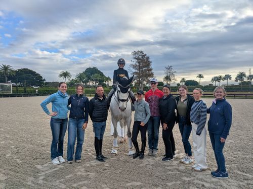 Day two of the Wellington Dream Program began at Roseview South with David Marcus and Molly Maloney. We started by watching Molly pilot a talented five-year-old, coming six-year-old gelding under David’s guidance. This session offered valuable tools for improving both horse and rider balance, along with thoughtful exercises designed to help loosen and stretch the horse. What stood out most to me was the emphasis both David and Molly placed on relaxation. Their focus on ease and softness was refreshing to me.