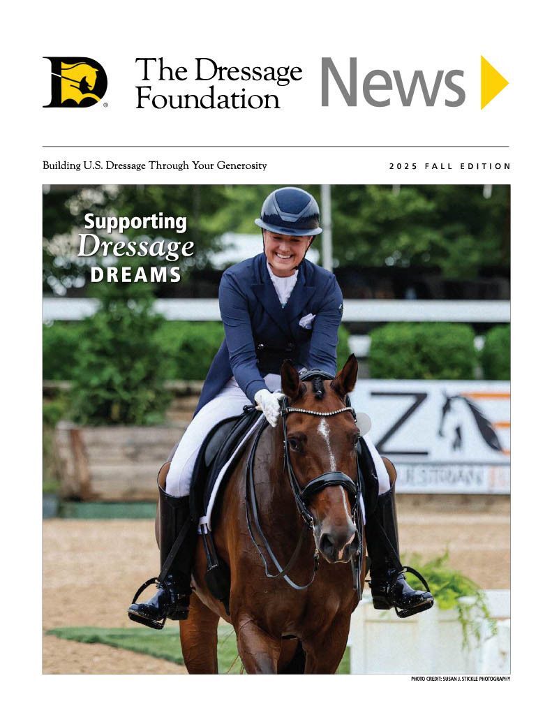 The Fall 2025 issue of The Dressage Foundation News is now available! Click on the picture below to download a PDF version. Would you prefer a hard copy sent in the mail? Please send us an email at info@dressagefoundation.org with your name and mailing address.