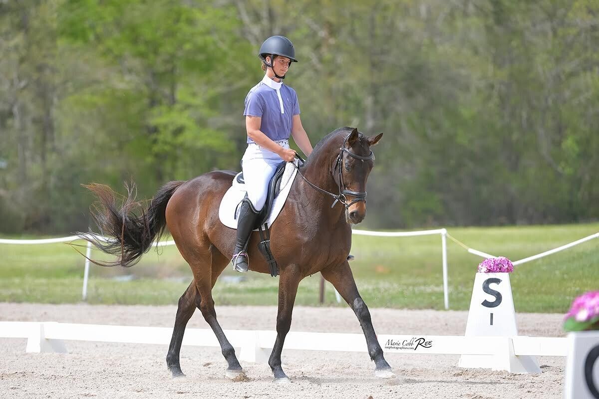 Kathleen is a member of the Southern Eventing and Dressage Association and is the owner of a 15-year-old off-the-track Thoroughbred, Winny. Kathleen has mostly developed Winny on her own and would like to use the grant funding for more professional help. With her funding, she will take two additional lessons per week, one with Winny and one on a schoolmaster owned by her trainer, Kalie Beckers. She will also use the funding to attend a clinic with Linda Strine. Katheen's goal is to "tackle" Second Level this fall and eventually earn her bronze medal.