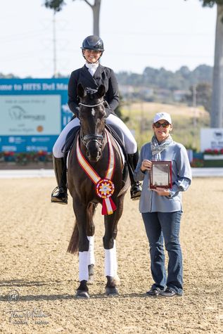 The Dressage Foundation (TDF) is pleased to announce that Jaclyn Pepper (CA) is the recipient of The Dressage Foundation’s third annual West Coast $2,500 Patsy Albers Award. The award was presented at the recent USEF Heritage competition 77th Annual Del Mar National Horse Show managed by HITS.